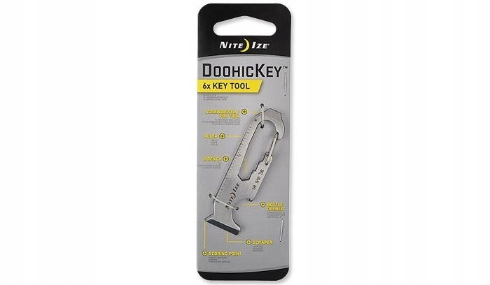 Karabińczyk BRELOK Nite Ize DOOHICKEY KMTP-11-R3 to uniwersalne narzędzie wykonane ze stali nierdzewnej, wyprodukowane przez amerykańskiego producenta NITE IZE. Ten kompaktowy micro-tool możemy doczepić do kluczy. Łączy w sobie wiele przydatnych funkcji, jak np. skrobak, otwieracz do butelek lub przecinak.