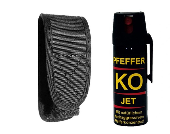 Gaz pieprzowy KO JET strumień 50ml - gaz obronny na bazie środka biologicznego Alkaloidu w formie strumienia, wyprodukowany przez niemiecką firmę Klever. Substancja drażniąca wydostaje się z miotacza w postaci żelu, co daje możliwość dokładnego ukierunkowania strumienia. Ten ręczny miotacz gazu działa również na ludzi pod wpływem alkoholu i środków odurzających. Gaz pieprzowy działa drażniąco na śluzówki, powodując ostre pieczenie oczu, katar, kaszel, a także silne duszenie się. Dzięki temu uniemożliwia napastnikowi dalszy atak i w znacznym stopniu utrudnia jego poruszanie się.