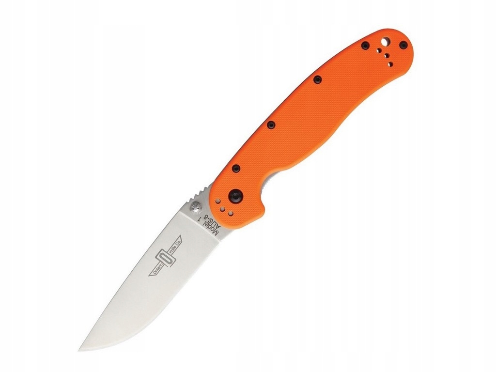 Nóż składany Ontario Rat 1 to jeden z najpopularniejszych noży EDC na świecie. Model 8848 OR cechuje się ostrzem wykonanym ze stali AUS-8 pokrytym antyodblaskową, srebrną powłoką. Okładziny noża zostały wykonane z nylonu wzmocnionego włóknem szklanym w kolorze zielonym, a wygodę użytkowania poprawia głębokie podcięcie pod palec. Za bezpieczne blokowanie ostrza odpowiada blokada Liner lock.