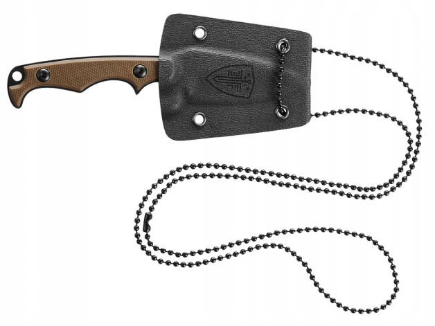 W zestawie kydexowa pochewka z łańcuszkiem do zawieszenia na szyi.